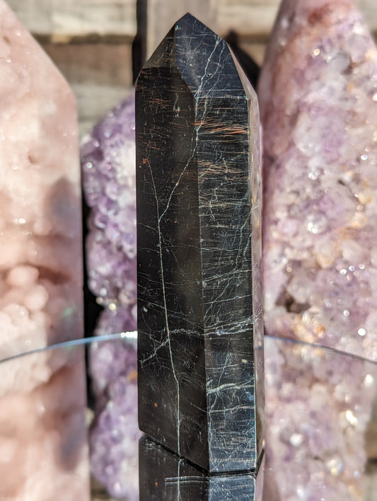 Pink Amethyst & Hematoid Quartz Tower | Love & Strength